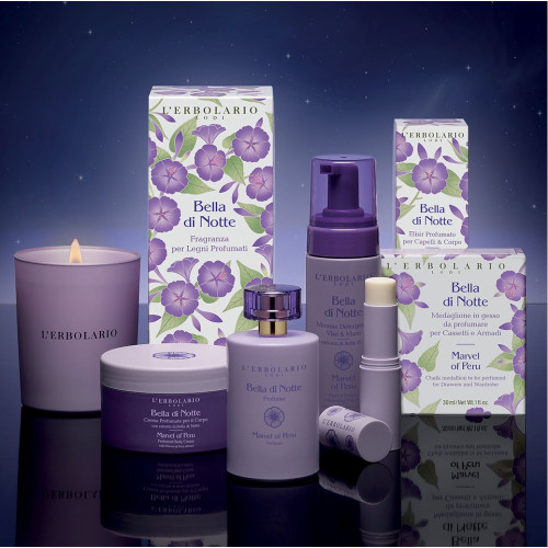 Bei Sonnenuntergang, an warmen Sommerabenden, öffnet die Blüte der Bella di Notte oder Mirabilis jalapa ihre bunten Blütenblätter und offenbart ihre diskrete und geheimnisvolle Schönheit. Dieser farbenfrohen Blume ist die Duftlinie L’Erbolario gewidmet: eine Kollektion, die sich durch einen eleganten, blumigen und vanilligen Damenduft auszeichnet und in vielen Körperpflegeprodukten erhältlich ist.